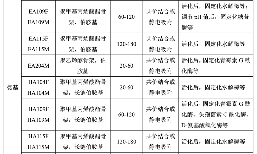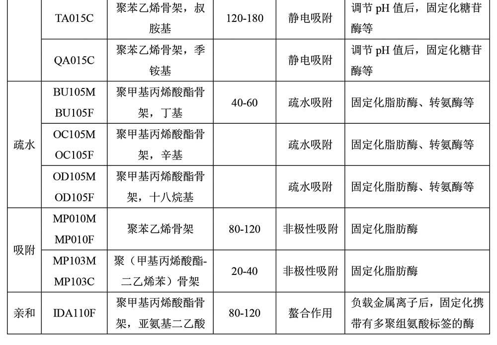 爭光現已自主研發出具有多種骨架、孔結構和結合基團類型較為齊全的系列固定化酶載體,共有環氧、羥基、氨基、疏水、吸附和親和共六大類、二十余個品種。固定化酶載體產品具有粒度均勻、結構可控、載酶活力高、批次穩定性好、機械強度優等特點,可固載多種生物酶,以滿足不同行業領域、不同使用環境下的生產應用和科學研究等的固定化需求。