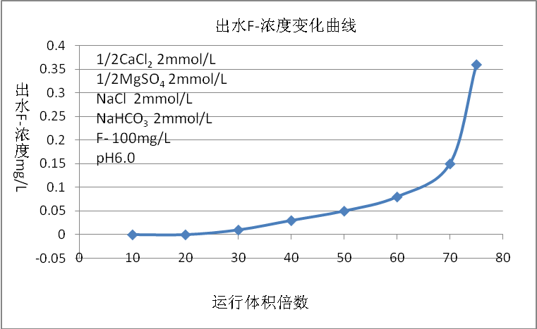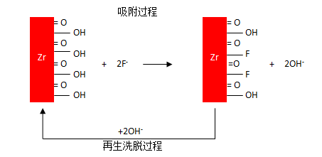 此樹脂工作原理是將離子交換樹脂上載鋯,樹脂上載有氧化鋯,會把F-吸附在樹脂表面和孔道內部。載氧化鋯的樹脂對F-的選擇性非常高,可以將飲用水、料液F-濃度降低到1mg/L以下。另外,此樹脂對溶液中砷酸根選擇性也很高,可以用于水和廢水溶液中除砷。