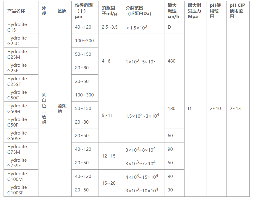 Hydrolite G系列葡聚糖凝膠過濾介質 |